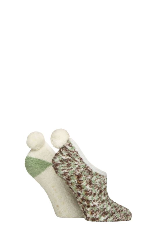 WildfeetWomens Animal & Patterned Cosy Slipper Socks with Grip 2-Pair